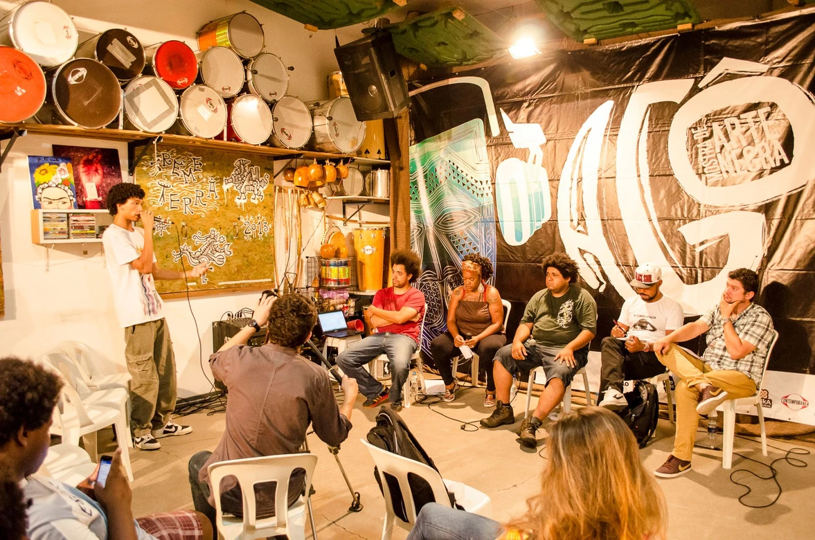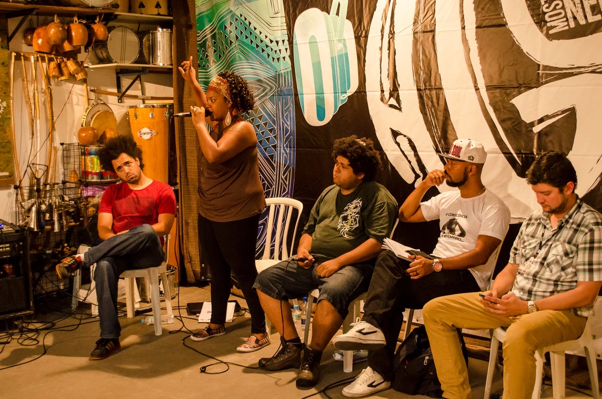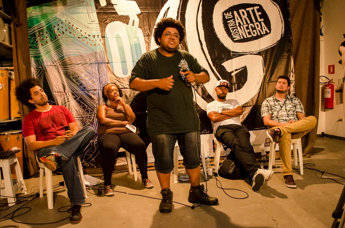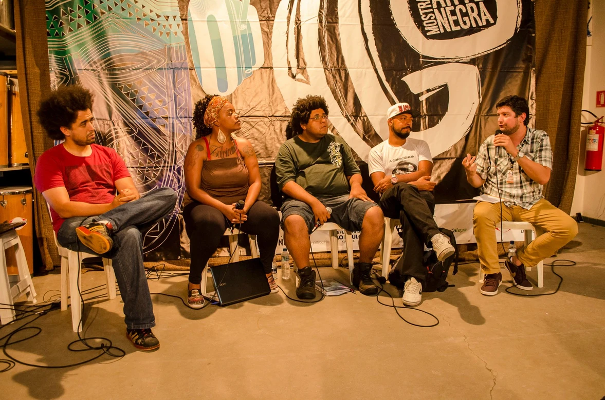 A mesa O Genocídio da juventude negra e a arte como resistência aconteceu no ponto de cultura Afrobase e trouxe o ativista e militante do movimento negro Juninho (Círculo Palmarino), a rapper Amanda Negrasim, o militante Douglas Belchior e o politico Gabriel Medina para debater e refletir sobre esse tema na comunidade do Rio Pequeno.
