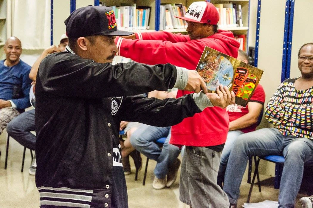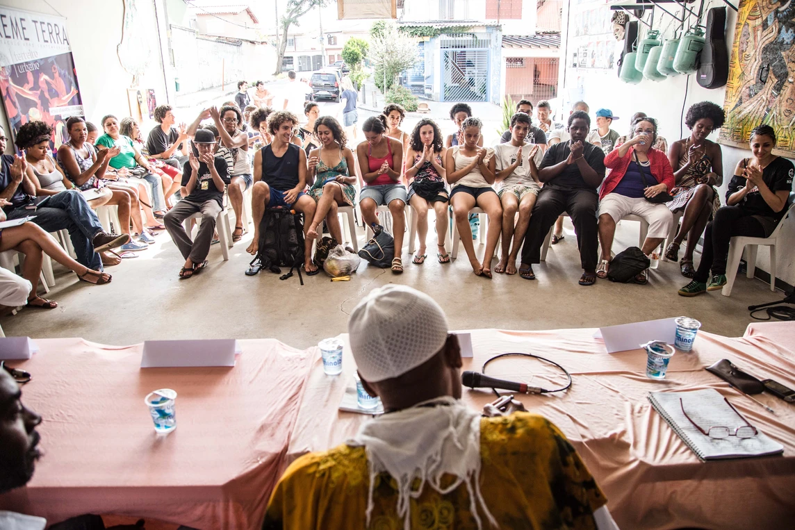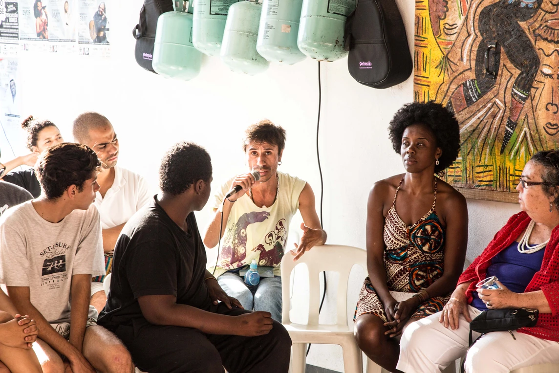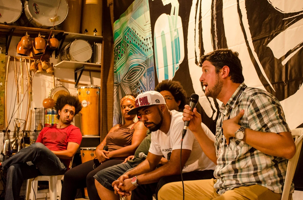 A mesa O Genocídio da juventude negra e a arte como resistência aconteceu no ponto de cultura Afrobase e trouxe o ativista e militante do movimento negro Juninho (Círculo Palmarino), a rapper Amanda Negrasim, o militante Douglas Belchior e o politico Gabriel Medina para debater e refletir sobre esse tema na comunidade do Rio Pequeno.